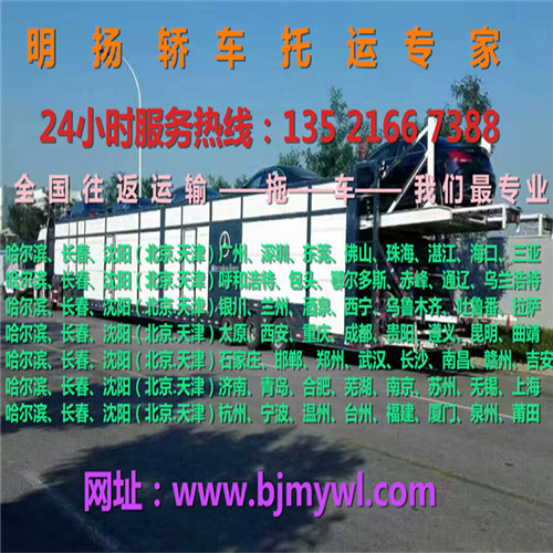 北京明扬物流【135 2166 7388 / 010-6120 6687】是专业从事轿车托运的物流公司、现掌控全国轿车托运网点及配送等业务、无论你的车在哪个城市我们都能帮您安全托运到位、只需您一个电话。全年无假日承接私家车托运、商品车托运、巡展车托运、二手车托运、广告车托运、电动车托运、4S点试驾车托运等、拖车送保险门到门服务、国内往返拖运、全程保险、让您无后顾之忧、拖车我们是认真的……