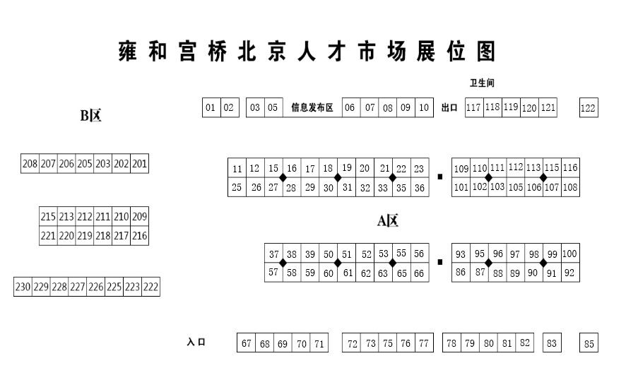 北京人才市场雍和宫桥分部是北京市人才服务中心所属的三大人才市场之一。自1992年设立以来,一直为用人单位和应聘个人提供优质的服务。经过不懈的努力,现已发展成为北京市首屈一指的人才市场。本市场设施完善,内设中央空调、大型显示屏、100多个标准彩钢板展位。