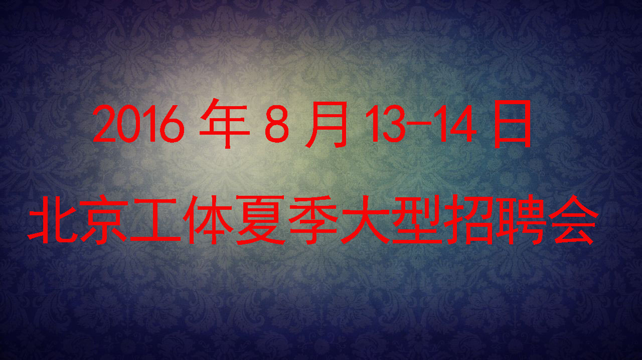 由北京工体人才市场主办的大型招聘会“2016年北京工体大型人才招聘会” 将于2016年8月在北京工人体育馆召开。