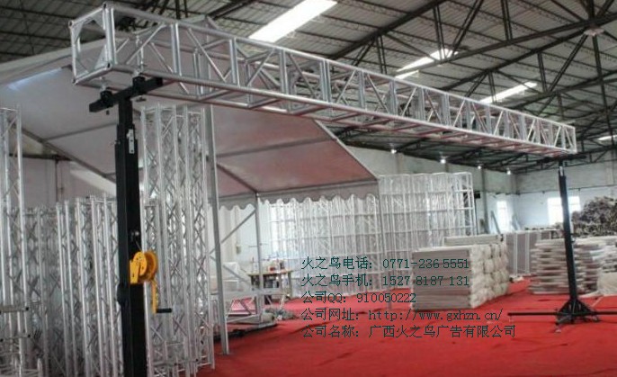 在zhao南宁桁架租赁公司?广西火之鸟广告公司=《活动庆典+广告物料出租+广告终端物料供应+广告设计制作/安装/印刷品》,种类齐全!价格实惠! 咨询电话 0771-236 5551 南宁桁架租赁公司