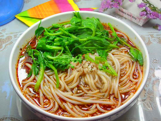 原材料有:鸡脯肉 、猪肚头、猪腰子、乌鱼肉、水发鱿鱼、油发鱼肚、火腿、香菜、葱头、净鸡块各20 不同制作方法云南过桥米线图片(18张)克 ,水发豆皮、白菜心、豌豆尖、葱、豆芽菜、蘑菇各50克,米线200克。制作方法 1.把肉料分别切薄片,有味的焯水后漂凉装盘; 2.其余各料另锅焯水,漂凉后切段装盘; 3.香菜、葱切碎,和油、辣椒及烫过的米线一同上桌; 4.鸡油烧热装入碗中,倒入烫过的米线的清汤,加调料上桌; 5.食时先将肉片烫至白色,下绿菜稍烫,再下米线,撒少许葱花、香菜即成 。