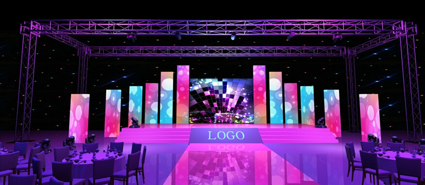 4、舞台设备:舞台、玻璃舞台、异型舞台、木制写真背景及铝制桁架喷绘背景板等