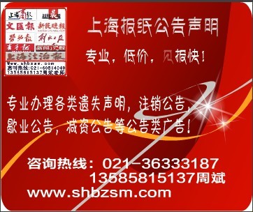 附:登报遗失声明,注销公告,减资公告,或登报业务客户不用上门办理.我们会上门来受理.