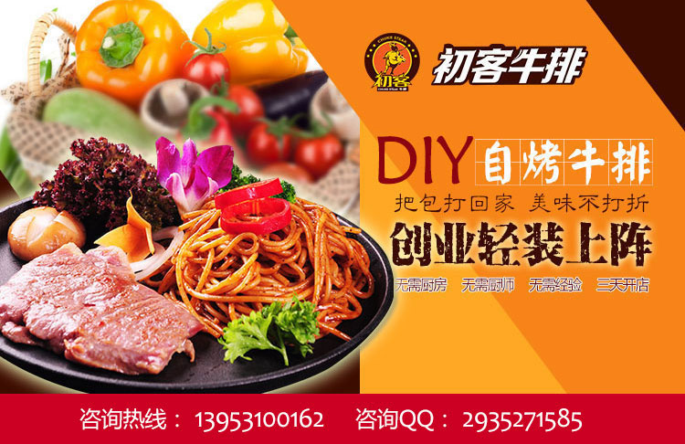 联系电话:139-5310-0162在线Q-Q:293-527-1585 (每天前十名可有机会获得10000元装修基金)初客牛排总部多年连锁店经验总结了一套适合国内广大市场的成熟经营模式,加盟初客牛排加盟费.加盟者少走很多弯路,加盟者可以用较小的代价分享初客牛排经过长期经营努力形成的品牌和信誉影响力总部专业研发团队,深入市场前沿,紧抓潮流脉动,不断创新研发出新菜品,抢占市场。加盟即赚钱,赶紧咨询吧!