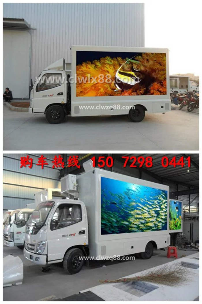 程力led广告车驾驶室左右两侧厢体安装P8户外全彩LED屏,整车框架结构,车厢整体采用钢骨架冲压成型,厢体结构材料为防腐冷扎钢板、厢体表面光滑平整车厢整体为圆弧包边,底板与裙板坡边处理;顶部平坦,尾部有转向灯、刹车灯、尾灯,警示灯;造型美观大气,而广告车省去了搭建,拆装等过程,体现了现代媒体方便快捷的优点
