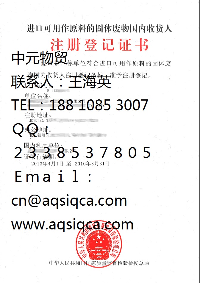2、 AQSIQ国内收货人注册登记证书的新办、变更等服务