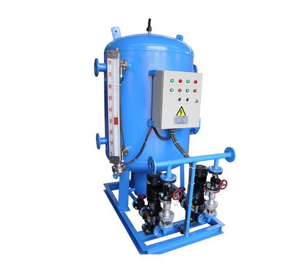 一、产品简介冷凝水回收器也叫凝结水回收装置,冷凝水是经过软化处理的高温水,且含有大量的热能。将冷凝水加以回收利用,可以节能节水,减少水处理的费用。我公司生产的冷凝水回收器已广泛应用于化工、石油、食品、纺织、橡胶、电力、冶金等行业及医院、餐饮、商场、办公楼等所有使用蒸汽作为生产、采暖、空调、生活热水等的冷凝水回收系统中,是节能环保的一种新型产品。二、 产品工作原理 冷凝水回收器通过罐体内的调压装置、除污装置、气蚀消除装置和专用水泵以及电气控制系统,解决了水泵的气蚀,杜绝了氧腐蚀,不见了二次汽,提高了水质纯净度,实现了高温冷凝水和高能二次汽的完全、低位、闭式直接回收,节约了大量能源。
