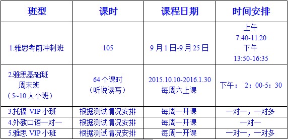 雅思班:25人小班授课,由雅思执教十年经验的资深金牌老师和外教授课,写作、口语均由在我校常年执教雅思的外教1对1面批、陪练。