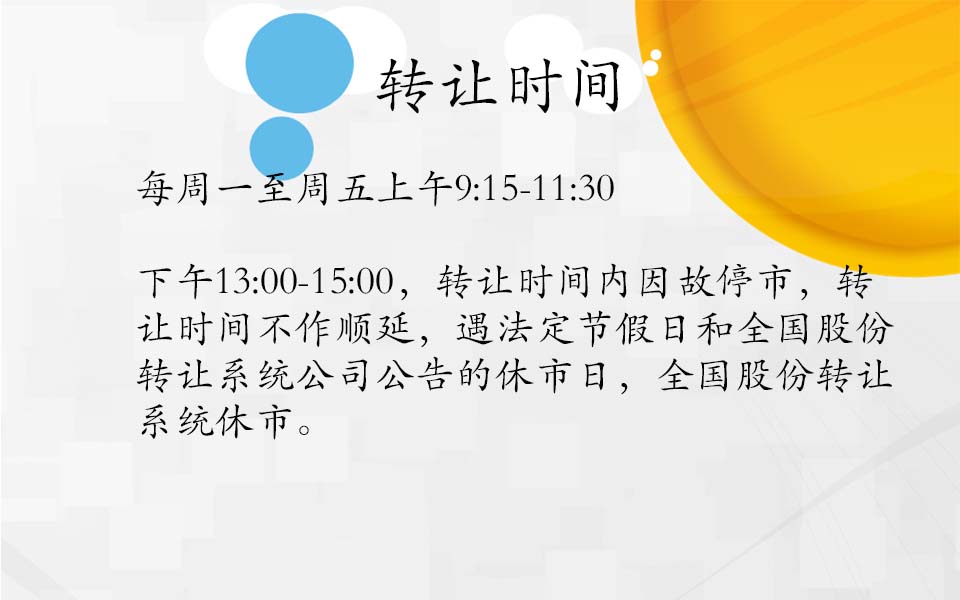 (1)转让方式:股票转让可以采取协议方式、做市方式、竞价方式或其他中国证监会批准的转让方式。经全国股份转让系统公司同意,挂牌股票可以转换转让方式。挂牌股票采取做市转让方式的,须有2家以上做市商为其提供做市报价服务。