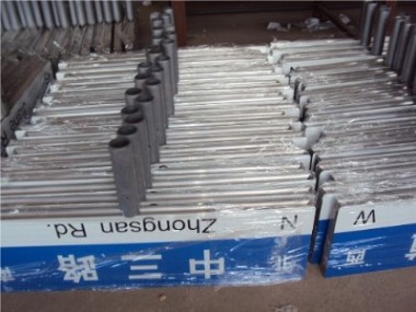 此次推出的新路名牌有三种类型,其高度都是2.5米,只是长度和宽度有所不同。这三种类型分别是:设置于支路的立杆式小号路名牌、设置于主次干路的立杆式大号路名牌、设置于主次干路交叉口的直角式路名牌。设置在主干路及次干路的路名牌,牌面尺寸为1500毫米×450毫米;设置在支路的路名牌,牌面尺寸为1200毫米×360毫米;设置在主干路与主干路、主干路与次干路交叉口的直角式路名牌,牌面尺寸为1500毫米×360毫米。