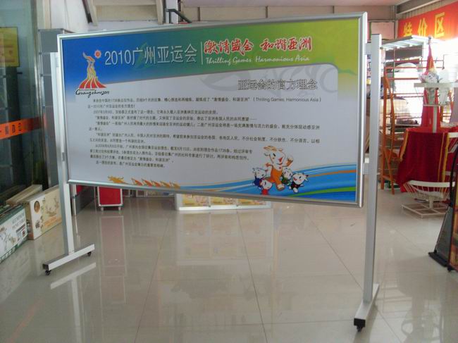 5.背板一般是用铝塑板,也可以用磁性白板。背板如果是白板的话,可以用磁铁直接吸住画面或通知,省去了粘贴的麻烦。