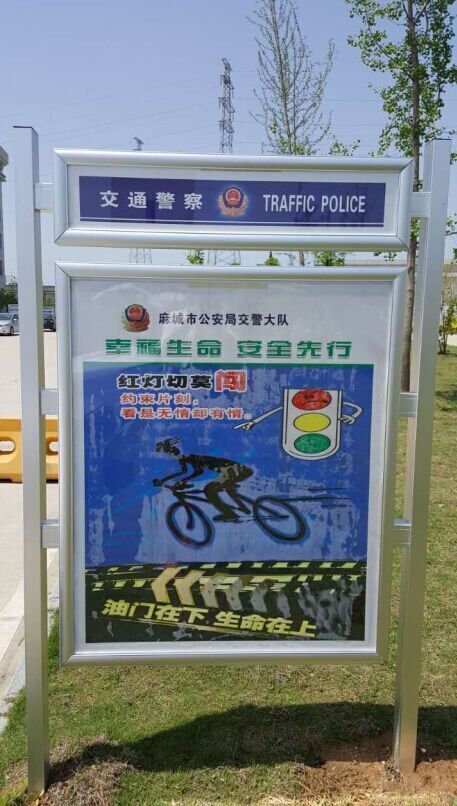 2、报栏的边框材料全部采用亮喷砂三酸镀膜处理的高强度铝合金制作而成,永不生锈,抗酸雨性好,耐磨耐腐蚀,使用寿命长!