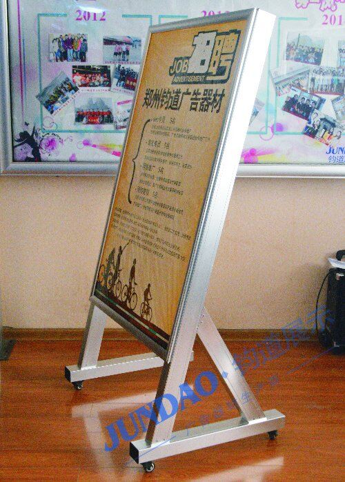 郑州钧道广告器材有限公司位居中国—郑州,是一家集研发、生产、销售、服务为一体的广告器材实体企业,专注于铝合金广告框、铝合金海报架、铝合金宣传栏、室内报栏、可调节导示牌、电线杆道旗架、量子云灯箱、拉布灯箱、卡布灯箱、LED超薄灯箱、餐饮灯箱、菜牌灯箱等广告器材的研发与生产。