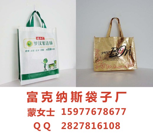 南宁富克纳斯环保袋厂自成立以来,一直致力于生产纸袋、环保袋、无纺布袋、帆布袋、牛津布袋、礼品袋、手提袋、复合袋、手挽袋、购物袋等;种类繁多,式样齐全。本公司技术力量雄厚,拥有高素质的专业人员,配备先进的专用设备,专业的人才、良好的员工素质及优良的设备,保证了公司具有生产高品质产品的能力。本厂拥有十二色自动张力高速印刷机一台(本机器印刷最大直径1500MM,印刷最大圆周2000MM)、十色中速印刷机两台、八色及六色彩印机各一台、日本小森L-428四开四色胶印机、海德堡对开四色胶印机、全自动覆膜机,压痕机,烫金机,切纸机;从而有效的解决了采购商,承接商在到制造商的三重利润空间,为您创造最大的利润空间! 经过多年的努力,拥有先进的设备,积累了雄厚的技术力量,实现了从印刷到生产一条龙服务。 付款方式:南宁定金付货款的30%,货到付尾款。 送货方式:免费送货(全国主要城市) 交货时间:5000个数量提交订单后10天内送到 (全国主要城市)。梧州环保袋印刷,广西南宁袋子生产厂家,厂家直销