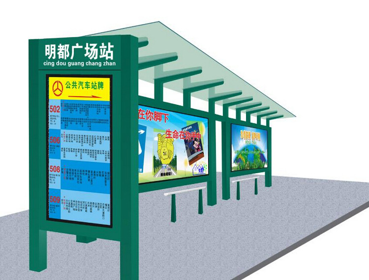 制作材质优质的站台,它在实际使用时,也需要对它进行日常维护,让美观大气的新型候车亭为城市添彩。公交站台制作集实用、美观于一体。细节决定成败,无论在结构设计上还是功能上都能提升城市的形象。对于客流量很大的路段,比如一天的客流量超过80万,由于候车的人很多,对公共设施的要求也会很多样。那么在公交站台制作的功能设计上就应该增添许多新的内容,比如:为市民提供各类滚动的新闻、时间、天气信息以及旅游指南等。