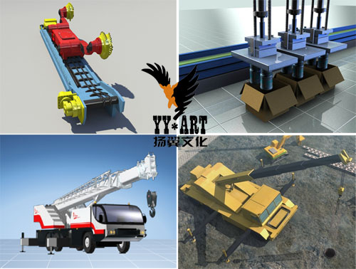 “机械设备三维动画展示”是新兴的、喜闻乐见、经济实用的、现代宣传展示方式,这种“三维机械仿真动画”是采用MAYA、3DS MAX、NUKE、AE等三维制作及后期处理软件模拟机械的外形、材质、零部件和内部构造,把机械的设计原理、工作过程、性能特征、使用方式等一系列真实的事物以动态视频的形式演示出来。如:模具的工作原理、工程机械的生产过程、机器的拆分组装、流水线设备的运作流程、系统型设备的运转方式、产品的使用方法等所有工业机械产品的模拟写实演示动画。
