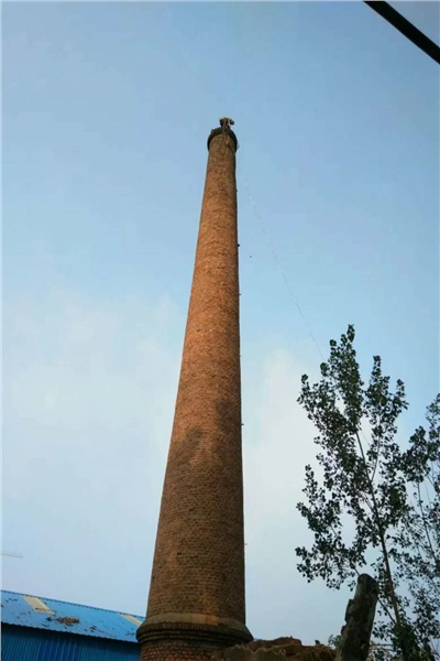 烟囱人工拆除:采取高空攀爬的作业登高到烟囱顶部,用拆除工具大锤、千斤行简体拆除,所拆砖块要往烟囱内部(或外壁)着落,在拆除时烟囱底部还要做好防护措施,预防有拆除的残留砖块或高空坠落,具体要在烟囱上搭建一个平台,这样可以让不小心坠落的残留砖块或掉在平台上,从而达到拆除的目标。同时拆除施工人员在烟囱拆除时要找可靠的位置系好带,还要保管好自己的施工工具,上要真正做到万无一失!