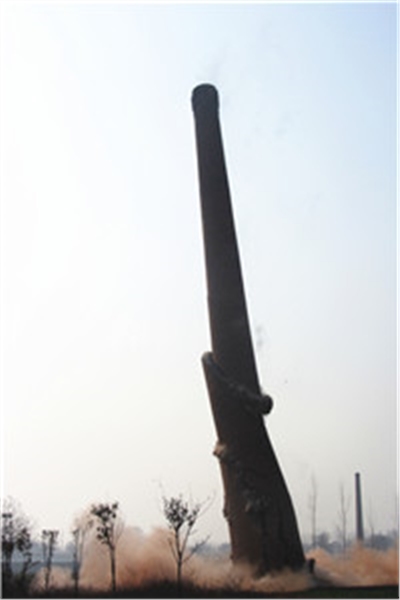 八、如果烟囱拆除工程烟囱的倾斜方向没有按照预订方案进行,则要暂停烟囱拆除工程,进一步研究现状后找到合理的烟囱拆除方案。