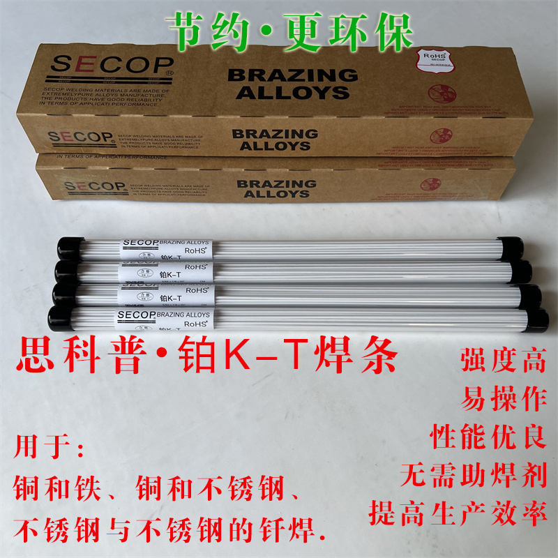 SECOP铂K-T焊条自钎材料适用于焊接铜和铁合金;铜和不锈钢焊接。