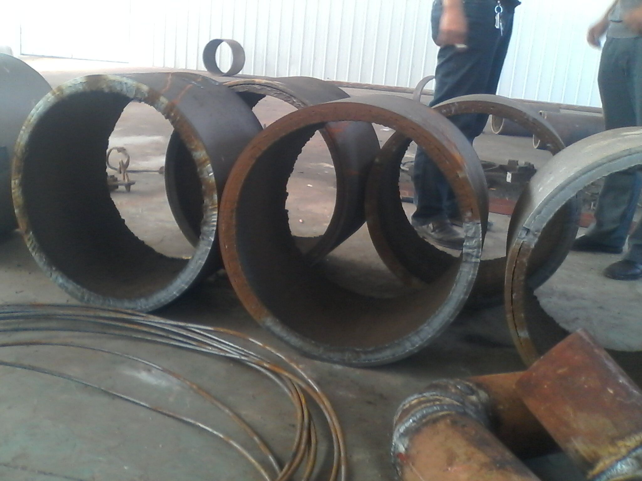 5、常规钢管内铸耐磨层复合钢管虽然较好克服了上述各种内磨管的不足,但由于生产工艺原因,在成品钢管内浇铸的高铬铸铁耐磨层难以与外层钢管形成均匀稳定的冶金结合,高强度、高脆性的内层不仅不能对整体补强,还导致结合处的边界部位极易因内应力原因出现裂纹,非结合处出现剥离脱落现象。由于内衬金属在外层低温钢管表面流动温降速度极快,导致内层金属夹渣凝固,表面光洁度较差。作为流体输送管存在粗糟内表面是不受欢迎的。