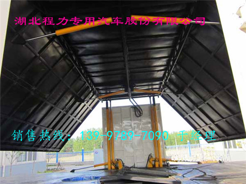 2.右侧外板及顶板右侧通过液压举升至与台面垂直位置,形成遮阳、挡雨、灯光固定的顶棚及广告的承载面。