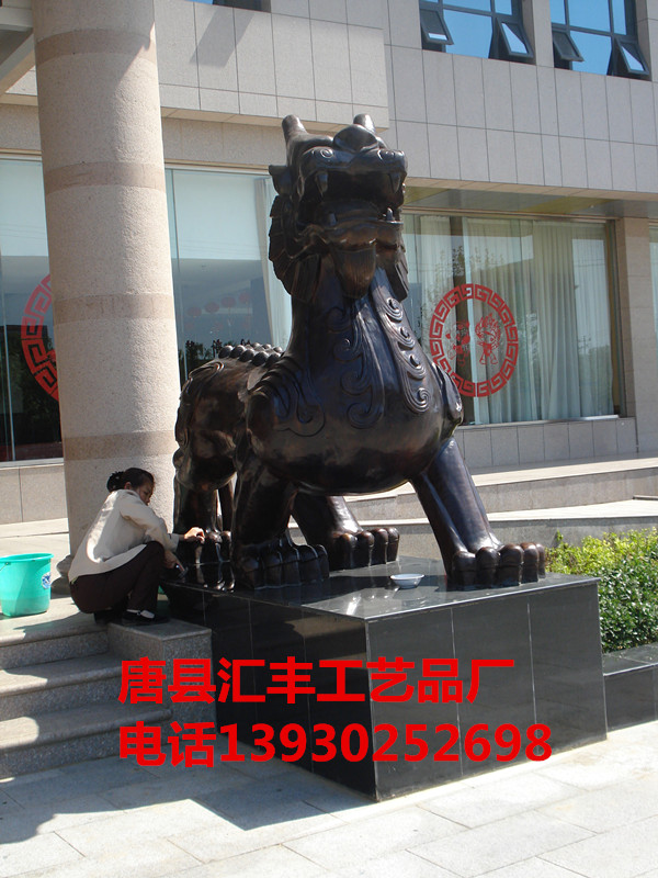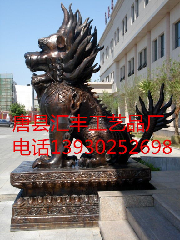 唐县汇丰铜雕工艺品厂在铜雕麒麟生产方面有着独到的经验,建厂多年来,为全国各地的朋友提供铜雕麒麟作品无数,因作品做工十分精湛而被广大朋友所信赖.汇丰铜雕以诚信经营为本,以为客户提供优质作品为己任,我们愿永以值的信赖的态度和作品为广大朋友提供更多的铜雕麒麟作品和各种铜雕作品.铜麒麟生产厂家汇丰永远是您最好的选择.