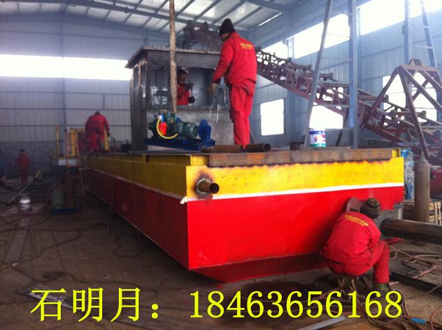 ⑴ 本船船体结构为单体射吸式抽沙船,能适用平板车、货车长途运输的要求。可以在水边现场陆地拆卸和拼装,拼装后可形成一艘完整的抽沙船。