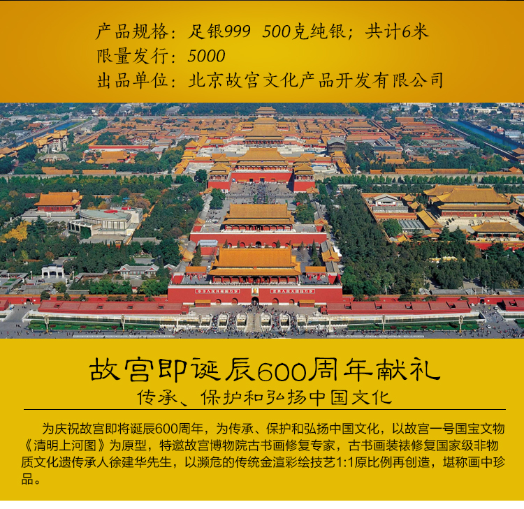 清明上河图展卷(金渲彩绘版)500克纯银