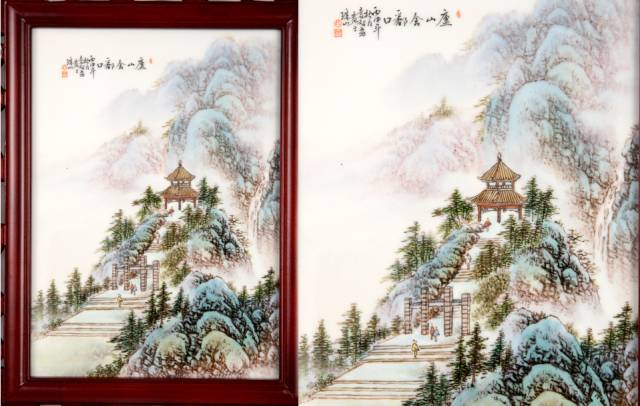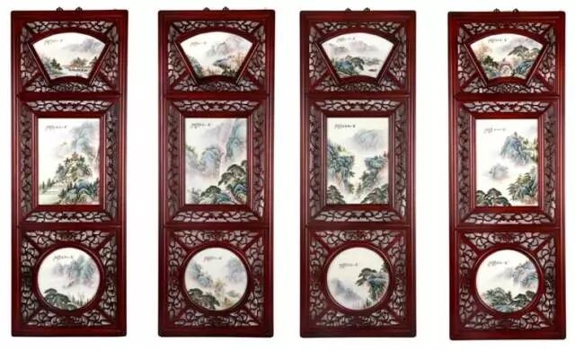 庐山十二景粉彩四条屏传世技艺