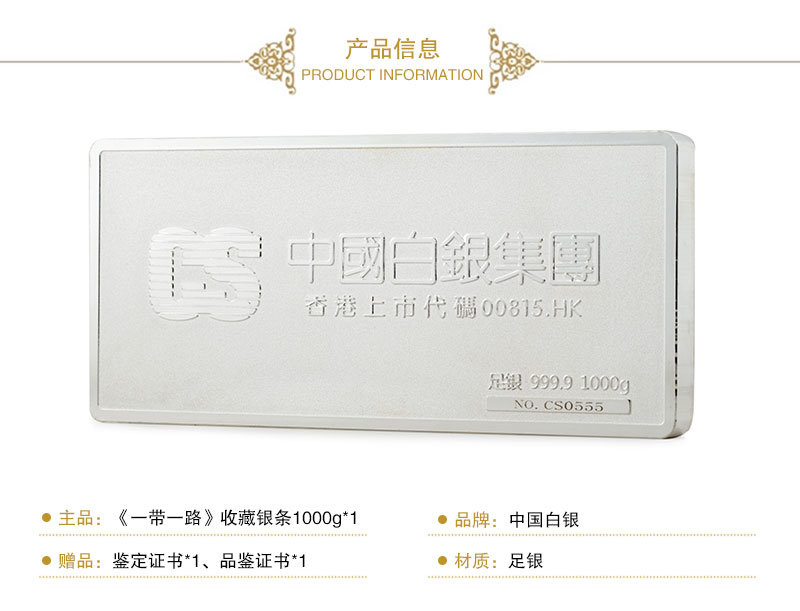 一带一路收藏银条1000g保值升值
