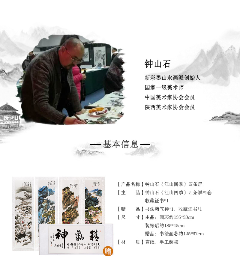 钟山石《江山四季》四条屏收藏馈赠