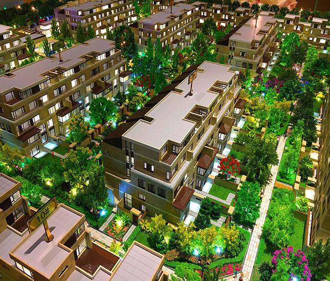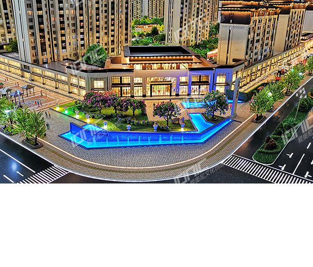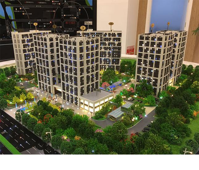 地产沙盘模型主要是展示地产商业街区、住宅环境等方面的项目信息,飞腾模型公司会根据地产公司营销展示需求设计出符合该公司的地产项目的沙盘模型,升降建筑、智能语音讲解、投影与灯光渲染等展示功能。