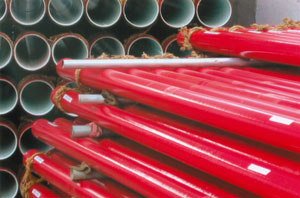 “瑞腾”牌内外涂消防管通常采用热塑性(PE)和热固性(EP)两大防腐型类粉末。热塑性树脂特点是随着温度的升高而变软,冷却后变得坚硬,且这个过程可反复进行多次。热固性树指特点是低聚合度的预聚体树脂,加入适量的固化剂在一定温度下烘烤固化,形成能溶化或熔融的质地坚硬的最终产物。根据使用要求钢管可选用焊管、镀锌管、无缝管、螺旋管,系统公称压力达1.0Mpa — 2.5Mpa。)