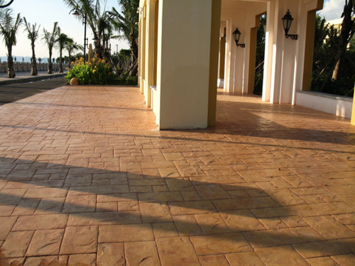 产品介绍: 彩色艺术地坪又叫彩色混凝土压模地坪,它是一种装饰性极强的艺术地坪,通过不同的色彩、色调、款式、纹理和不规则线条来实现各种创意,改变了混凝土表面呆板、灰冷的缺憾。 艺术地坪借助于独特的压模着色工艺,在混凝土表面所呈现出风格迥异的艺术效果,其远远超过了花岗石、大理石、青石板、木板及砖石等,同时具备单一混凝土表面所没有的防腐、防滑、耐磨等特质。该系列广泛适用于泳池、庭院水榭、酒店、人行步道、门廊、各种新旧混凝土表面。 彩色混凝土压模地坪在我国还属新型材料,但它已广泛使用于欧、美、日等许多发达国家,它可以给建筑师以充分的想象空间,它可以通过模压的手段逼真的模拟出各种天然的、人工的装饰材料的质感,纹理和凹凸不平的效果;或为追求质材和历史感而制造出斑驳陆离,自然浓重的杂色斑痕效果;既可大面积营造某种气氛,亦可在建筑或景物中轻巧点缀,起到画龙点睛之效,使建筑更接近人们梦寐以求的“凝固的音乐,立体的诗篇,永久的画面”的境界。在生产、运输和施工时对自然资源的耗费降到最低,且该材料不易褪色,不磨损、免维护、性能稳定、无辐射,不会散发气体,不会因分解而污染环境。是真正的“绿色环保产品”。