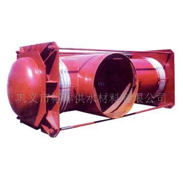 该膨胀节的两端各有一个工作波纹管,中间有一个平衡波纹管,膨胀节通过受力构件(大拉杆或舌管)来承受内压推力。因此管系只需中间固定支架。此类膨胀节只能吸收轴向位移。