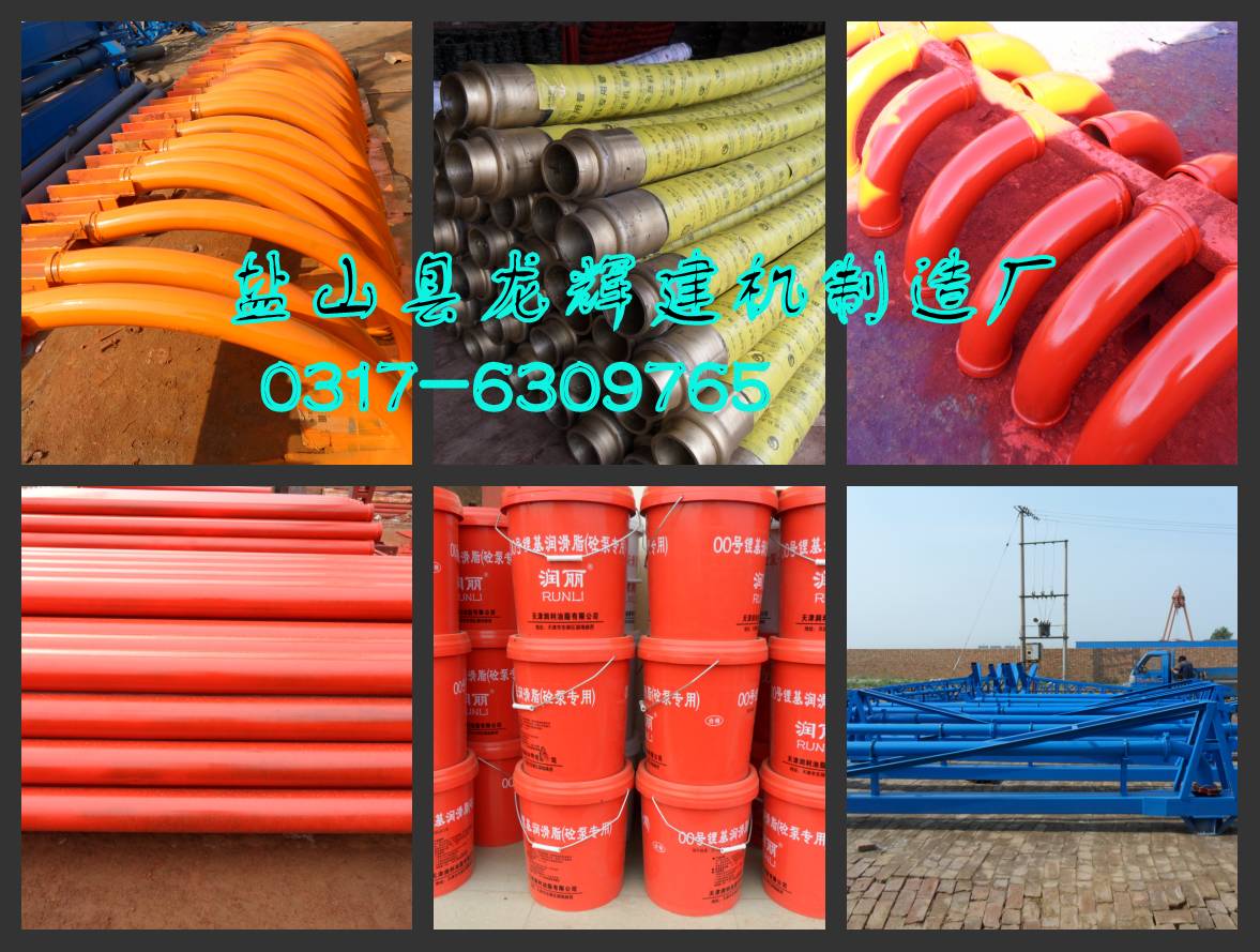 混凝土输送泵(HBT30-80)管道及配件:备有地面管、水平管、高低压直管、弯管(弯头)、变径管(锥管)、连接钢卡/泵卡/管卡、3-5米橡胶软管、密封圈(橡胶圈)、清洗球/柱(海绵橡胶)、铸钢弯头、合金高锰钢弯头、清洗/整体/分体活塞、硬质合金眼睛板/切割环、S管(裸管)、密封件修理包及橡胶尼龙件、料斗搅拌易损件、输送缸、各式液压油及柴油滤芯等。