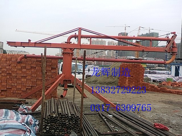 混凝土手动布料机:是一种与混凝土输送泵配套使用的新型施工机械,就像一只机械手,能将到了施工面的混凝土快速、准确地送抵作业面的任一浇注部位并进行连续浇注,充分发挥了两个技术的优势,极大地降低了劳动强度及成本,提高了施工的进度和质量,常用浇注范围为:BLG12米、BLG15米、BLG18米,也可根据用户所需加工、定做。