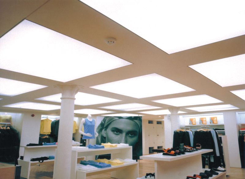 ◆软膜天花并不附属在固有的屋顶上,而是与屋顶形成一个夹空层,在此空间内可以安装消防管道、空调管、电源线管等设备。