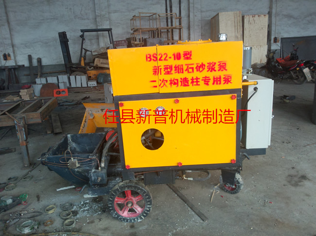 建筑专用二次构造柱浇筑混凝土泵 性能特点:本产品采用液压式送浆,振动网过滤双缸往复作业完全能够输送建筑应用中各种砂浆、细石混凝土等,本品具有排量大,压力高、省工省料,移动灵活等特点,是一种理想设备。