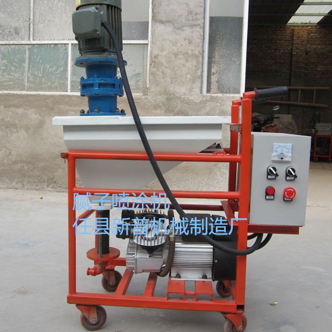 腻子喷涂机是搅拌、泵送、喷涂优质腻子粉的小型机械,是喷涂机当中的腻子喷涂机一种,主要喷涂国内外生产的各种装潢腻子。每天喷涂面积可达1500平方米左右,适用于房屋防护、粉刷、上底浆等。