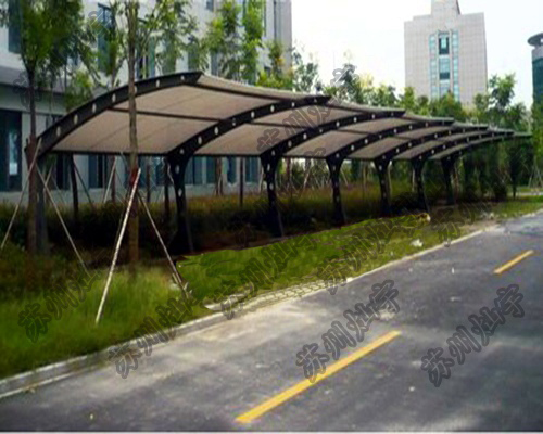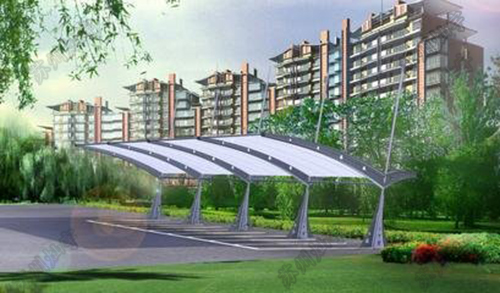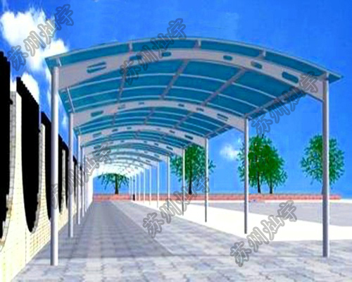 2、车篷根据材质不同可分为彩钢板、阳光板、耐力板、洁光板、夹芯板和膜结构等,其中使用的比较多的是彩钢板、阳光板、耐力板和膜结构,其中彩钢板的构成比较简单,仅仅为不同类型的圆管