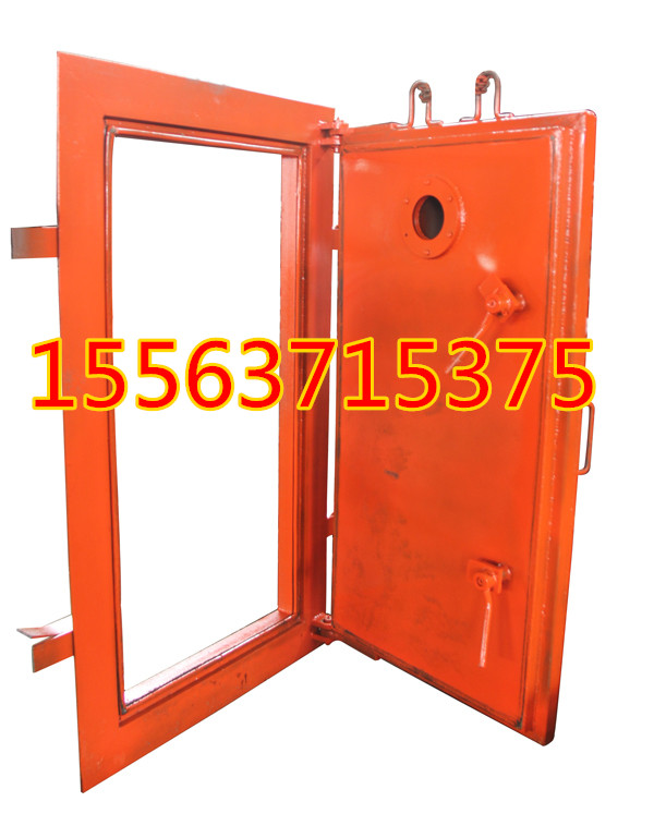 避难硐室门用于煤矿井下避难硐室过渡室与生存室之间。保护硐室内人员安全(一套两扇)。向外开启,起到能防水、防火、防冲击波的作用.
