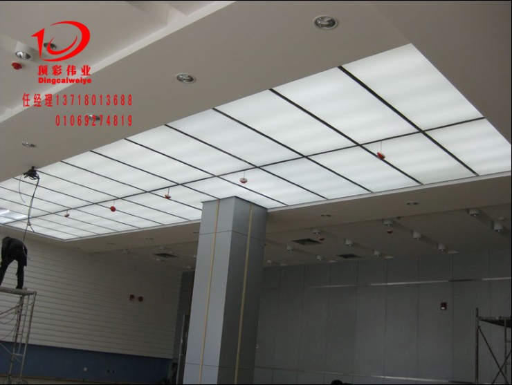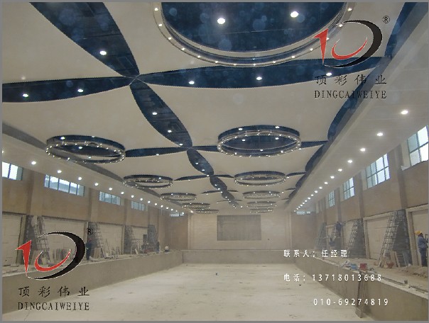 北京顶彩伟业装饰材料技术有限公司_主营:软膜天花,柔性天花,拉蓬吊顶软膜天花--顶彩、软膜天花,柔性天花,天花吊顶;地址:北京市大兴区瀛海镇姜场工业园;电话010-69274819软膜天花介绍;柔性软膜天花,源自欧洲,装饰艺术世界的领域。软膜天花是目前国际上流行。最高档的天花装饰材料,采用最先进的技术制造。让设计师的无限想象和创意给您的空间带来无穷的想象力。软膜有六种内型龙骨,上百种颜色:光面,透光面,乳白色,半透明,缎光膜,鲸皮面(有优异的吸音性能),金属面,基本膜。 简易特点:造型随意变换色彩。防霉、抗菌、抗老化;良好的绝缘防水功能;隔音隔热,节省供冷供热能源费用。不挂尘、防油烟,防火阻燃;无毒无味,安全环保;安装、拆卸方便;理想的声学效果。适用范围:家居、公寓、办公室、厂房、会议室、电脑室、医院、售楼大厅.学校、影院、酒店房间、会所、游泳馆、浴室、娱乐场所、卡拉OK房、商业场所、展馆布置等等。用途广泛,是您理想家居的首选!