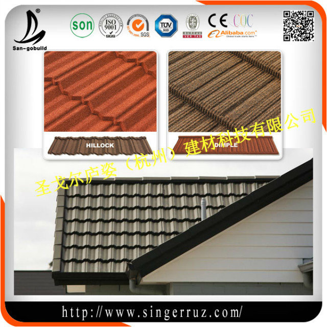 7、 抗风 彩石金属瓦每片的水平搭接设计可抵抗旋风及强风。