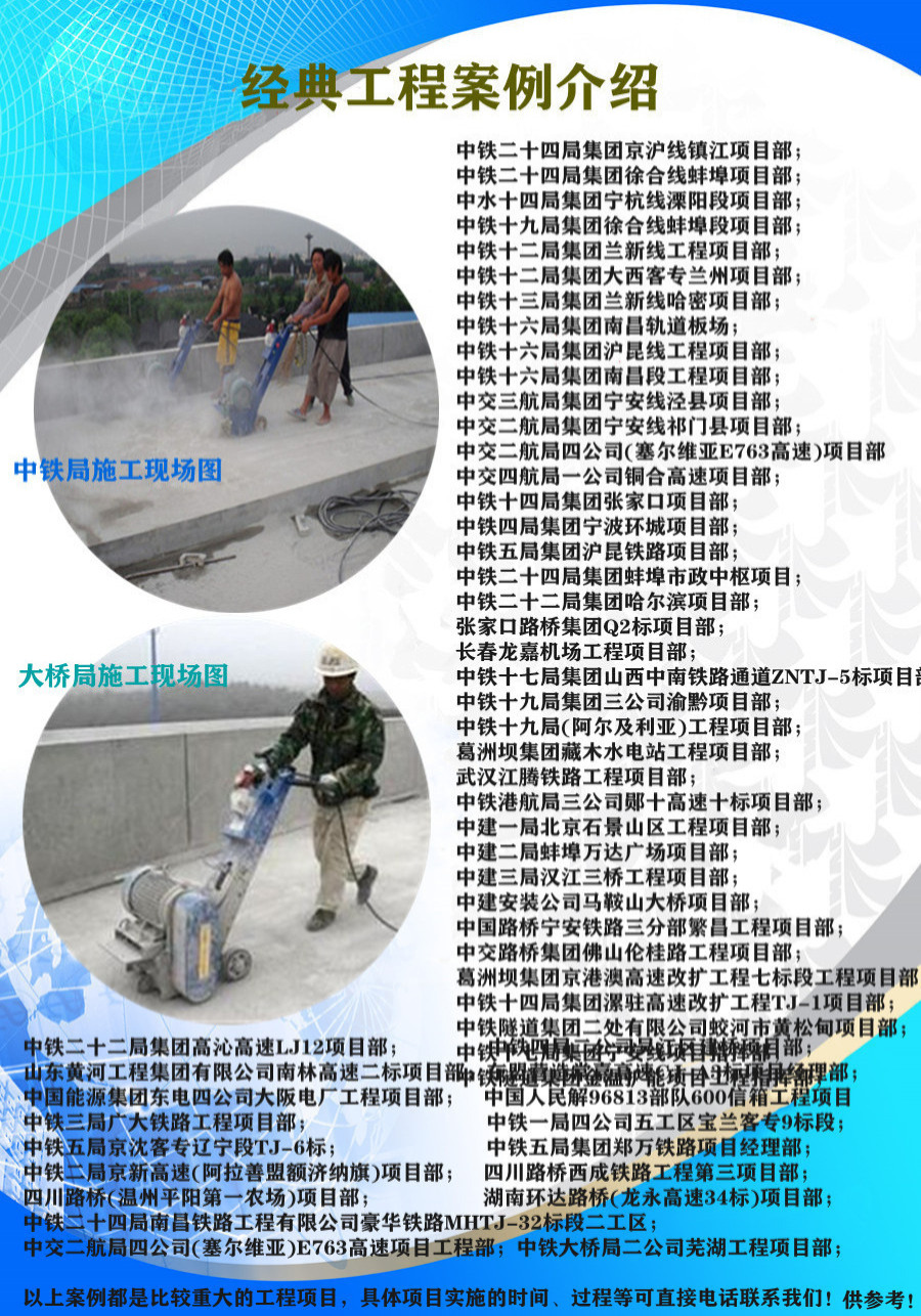 工程案例:已被各大中铁局、港航局、中交局、中建局、中隧集团、路桥集团等广泛采纳并使用(用户太多,无法一一登载,如需要详细的工程案例信息可联系我们)!