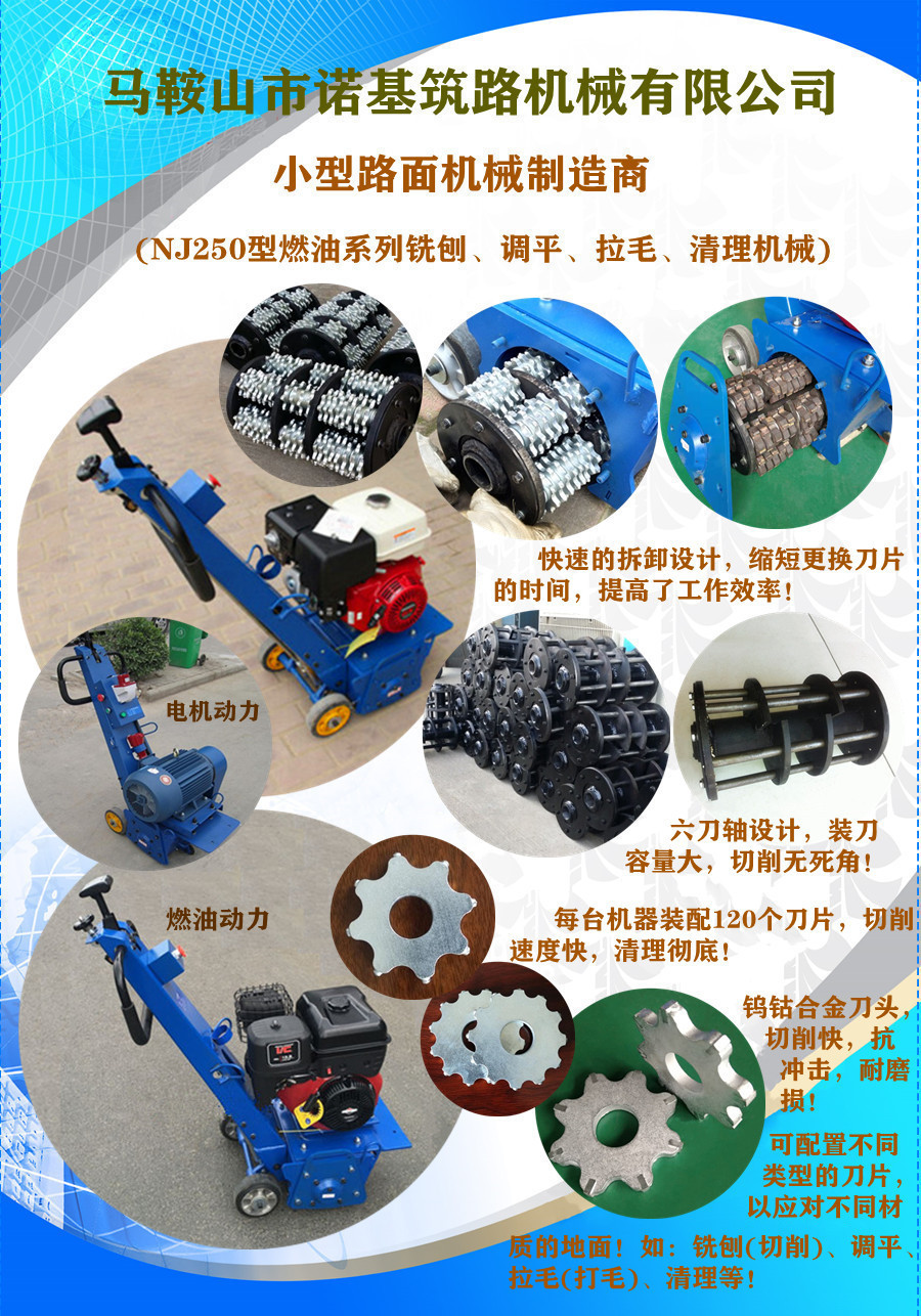 铣刨宽度:铣刨宽度250mm(NJ300型的为300毫米);工作面太宽,不利于小范围或小区域场地的施工;