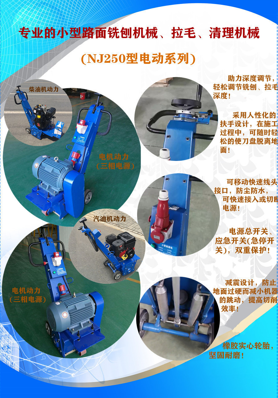 动力配置:采用7.5KW-4级变速电机或者13.5HP马力25T2汽油发动机为动力,动力充沛!可轻松刨除C50标号以上的混凝土!