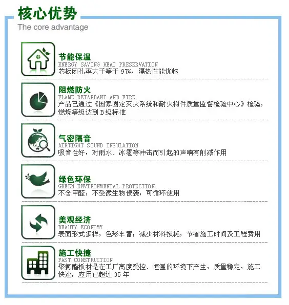 千万间新型建筑材料有限公司是集板材设计、研发、生产、施工、一体化的科技公司,并在同行业中率先通过了质量、环境、安全管理体系认证。公司2011年投入资金2000余万元引进世界先进的聚氨酯节能板连续生产线、意大利进口发泡系统,采用六组份在线自动操作混合浇注技术,在线一次性完成社会配料中心或工厂的配比混合工艺,并可以根据温度在线自动调整,从而生产处与众不同的高强度、节能型、绿色环保的聚氨酯保温复合板。(其使用年限高于同行业其他品牌5-10年)