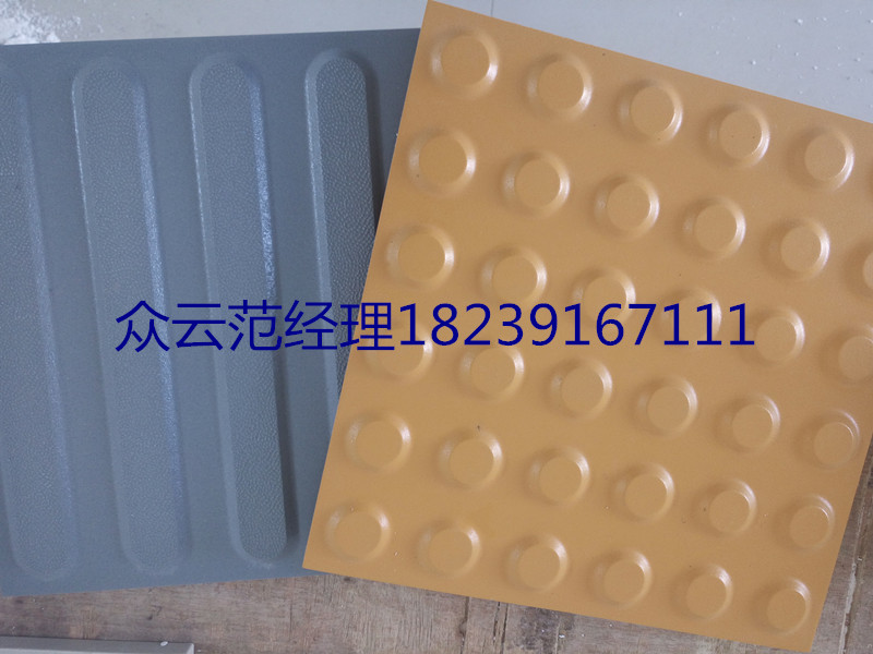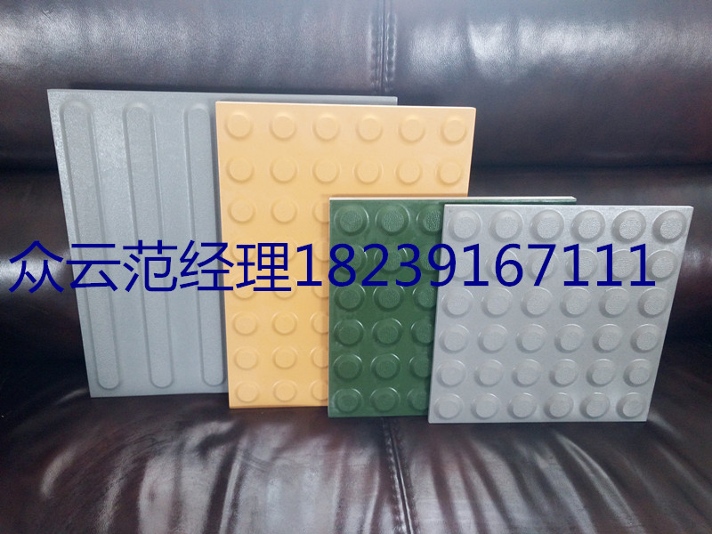 提示盲道砖:呈圆点形,每个圆点高出地面5mm,可使盲杖脚底产生感觉,以告知视力残疾者前方路线的环境将出现变化。