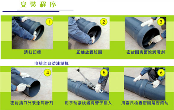 4.具有良好的水密性:PVC-U管材的安装,不论采用粘接还是橡胶圈连接,均具有良好的水密性。